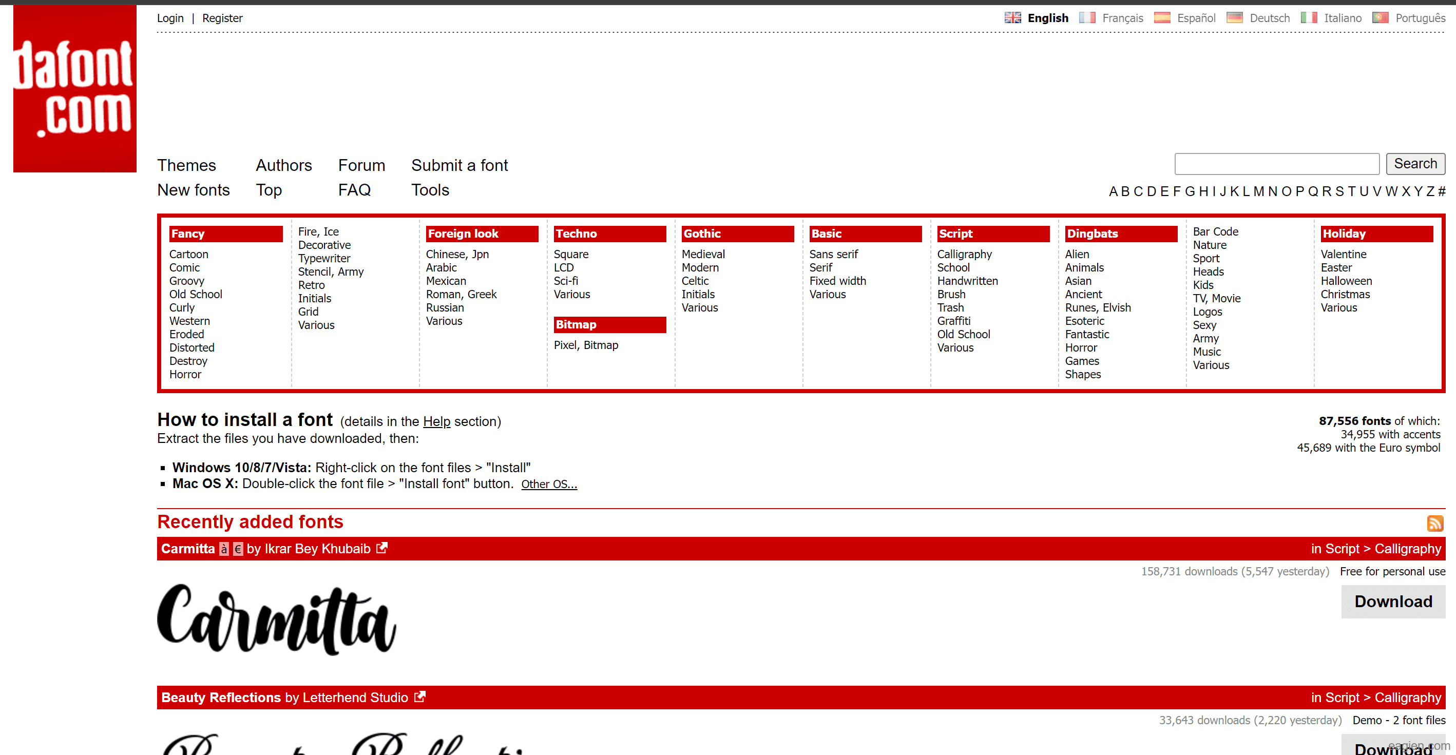 Dafont是一个提供丰富多样的免费英文字体下载的网站,拥有成千上万种风格的字体供用户浏览和下载。无论你是寻找优雅的手写字体、现代简约的无衬线字体,还是复古风格的衬线字体,Dafont都能满足你的需求。