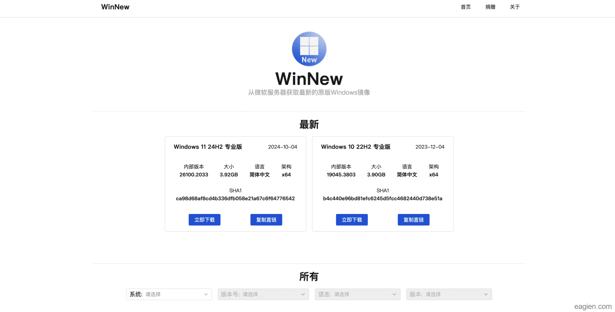 WinNew是一个专注于提供微软官方原版Windows系统镜像直链下载的网站。其核心服务是通过定时抓取微软官方Windows媒体创建工具(Media Creation Tool)的数据列表,同步获取最新版本的Windows 11/10镜像,并生成直链供用户下载,确保系统原汁原味、无任何二次修改。