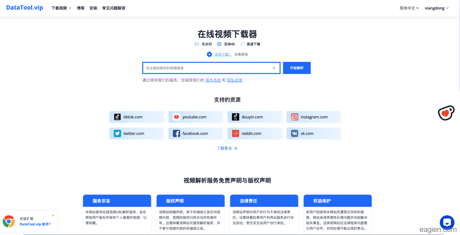 该工具提供 浏览器扩展 和网页端两种使用方式,其中扩展功能可一键触发下载流程,极大简化操作步骤。值得注意的是,DataTool 不存储或分发任何内容,仅作为技术中介存在,强调对版权方的合规性。
