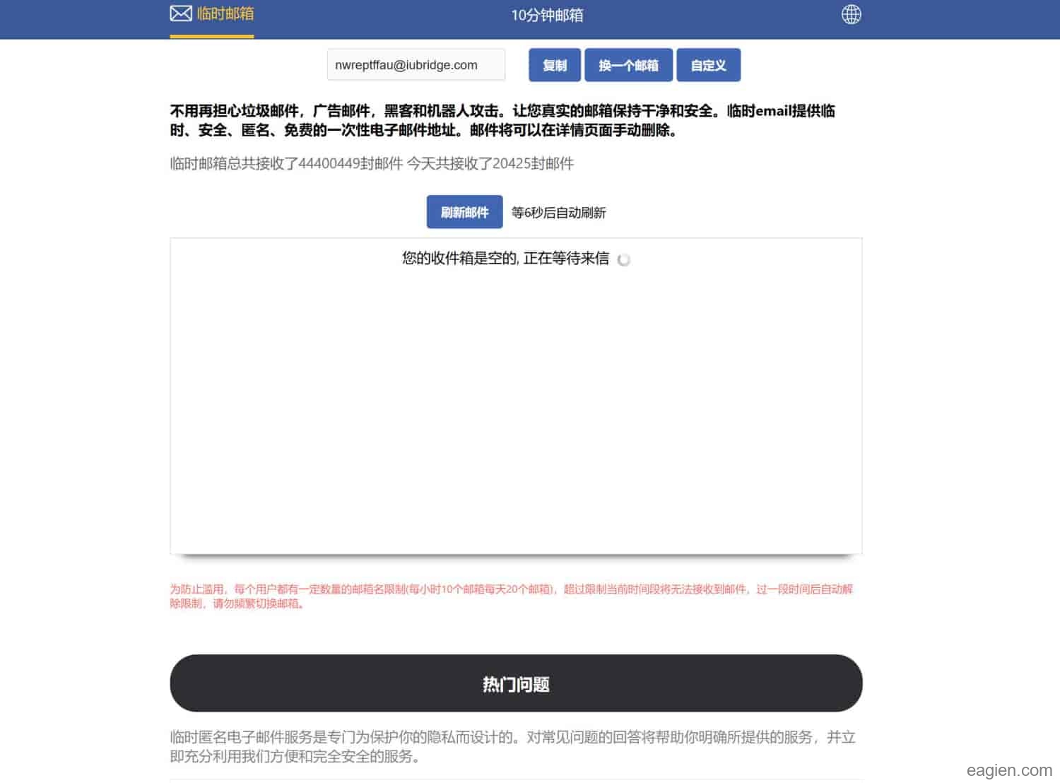 - 限制滥用:为了防止服务被滥用,网站对每小时和每天的邮箱数量进行了限制。