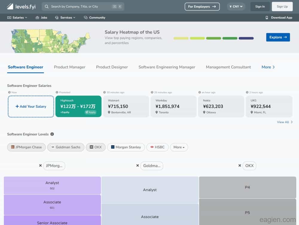 levels.fyi是一个可以查询国外大公司薪酬的网站,通过它你可以查询苹果、谷歌、微软、亚马逊等国外大厂各个岗位的薪酬福利以及职级等级。对应国内网站是:职级对标