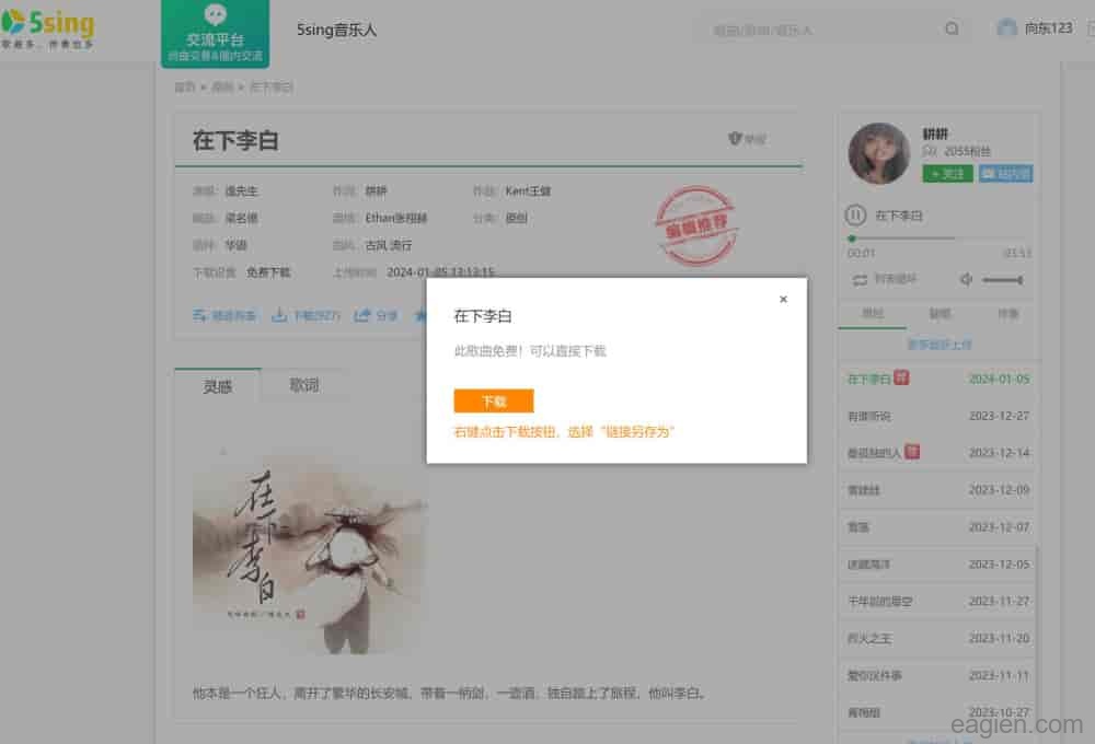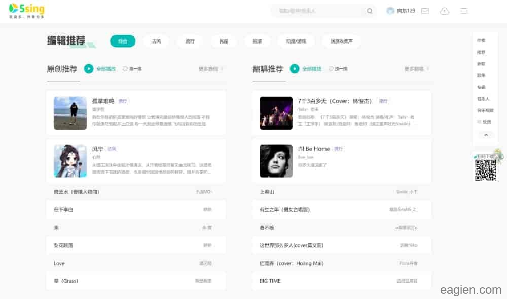 5sing音乐是一个由酷狗音乐发起创办的原创音乐平台,你可以在这里发布你的原创歌曲,用户可以免费收听、登录注册后可以下载你的歌曲!